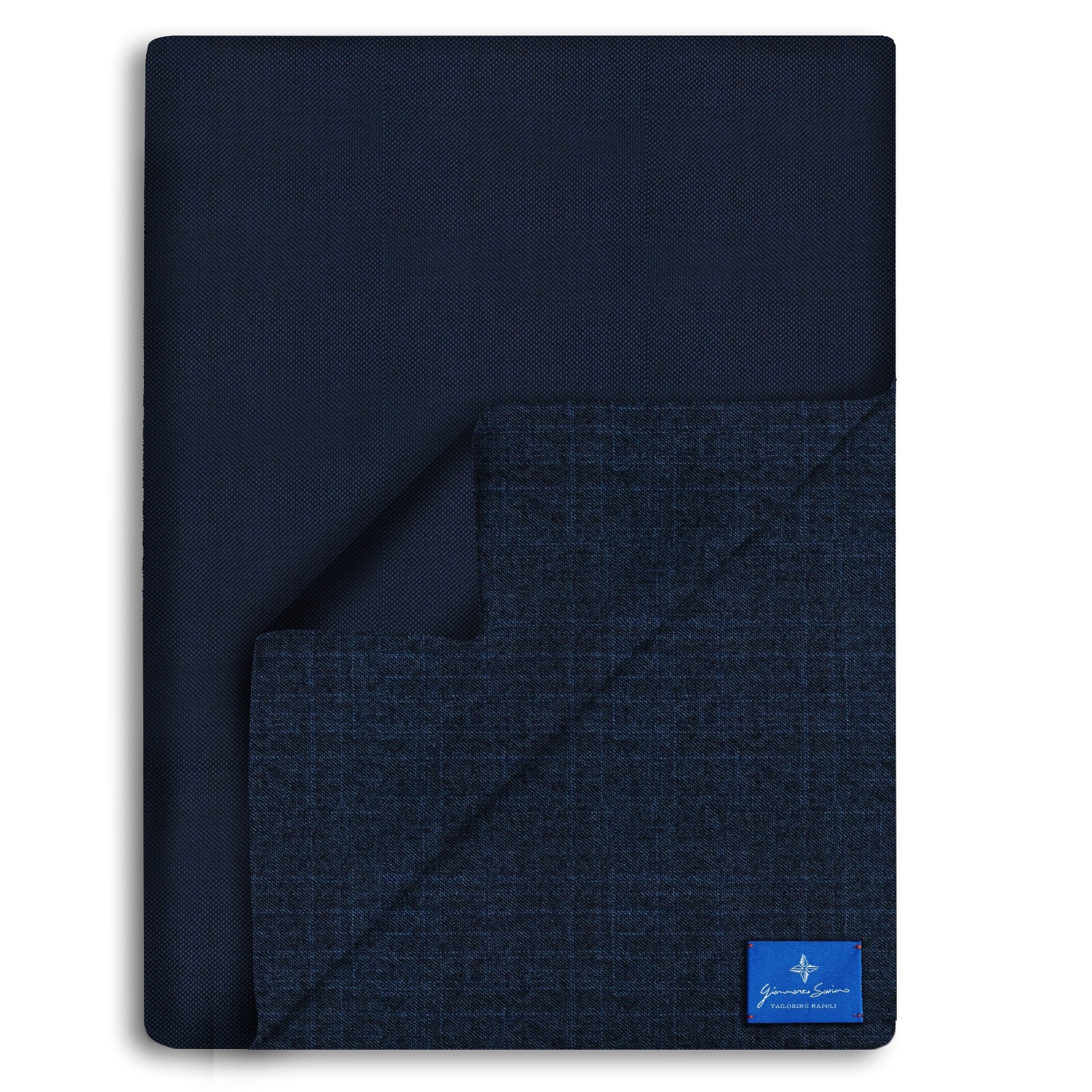 The side on which the pattern is present is made of silk fabric while the side on which there is the monochromatic color with the dark reflections of the pattern is in high quality wool fabric.