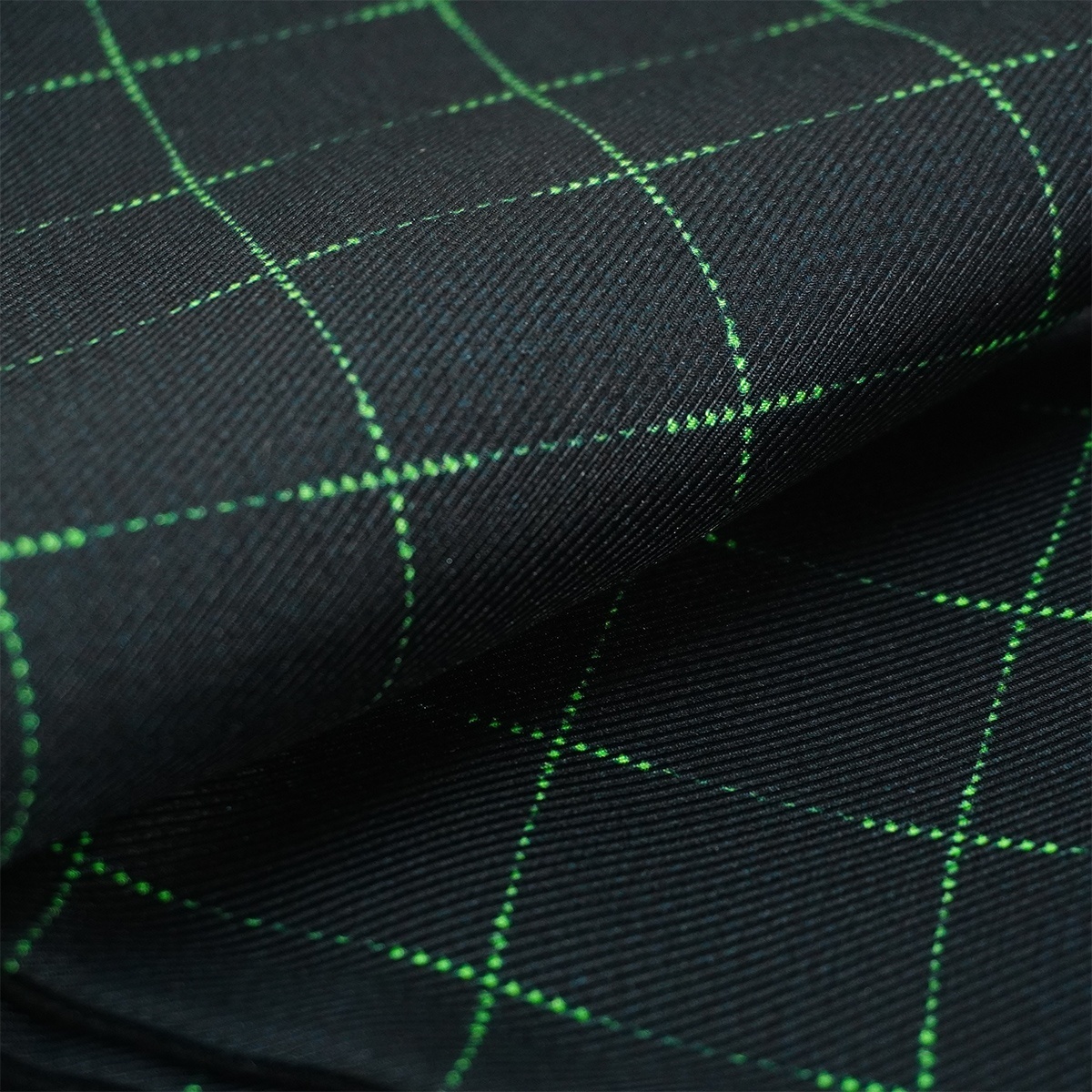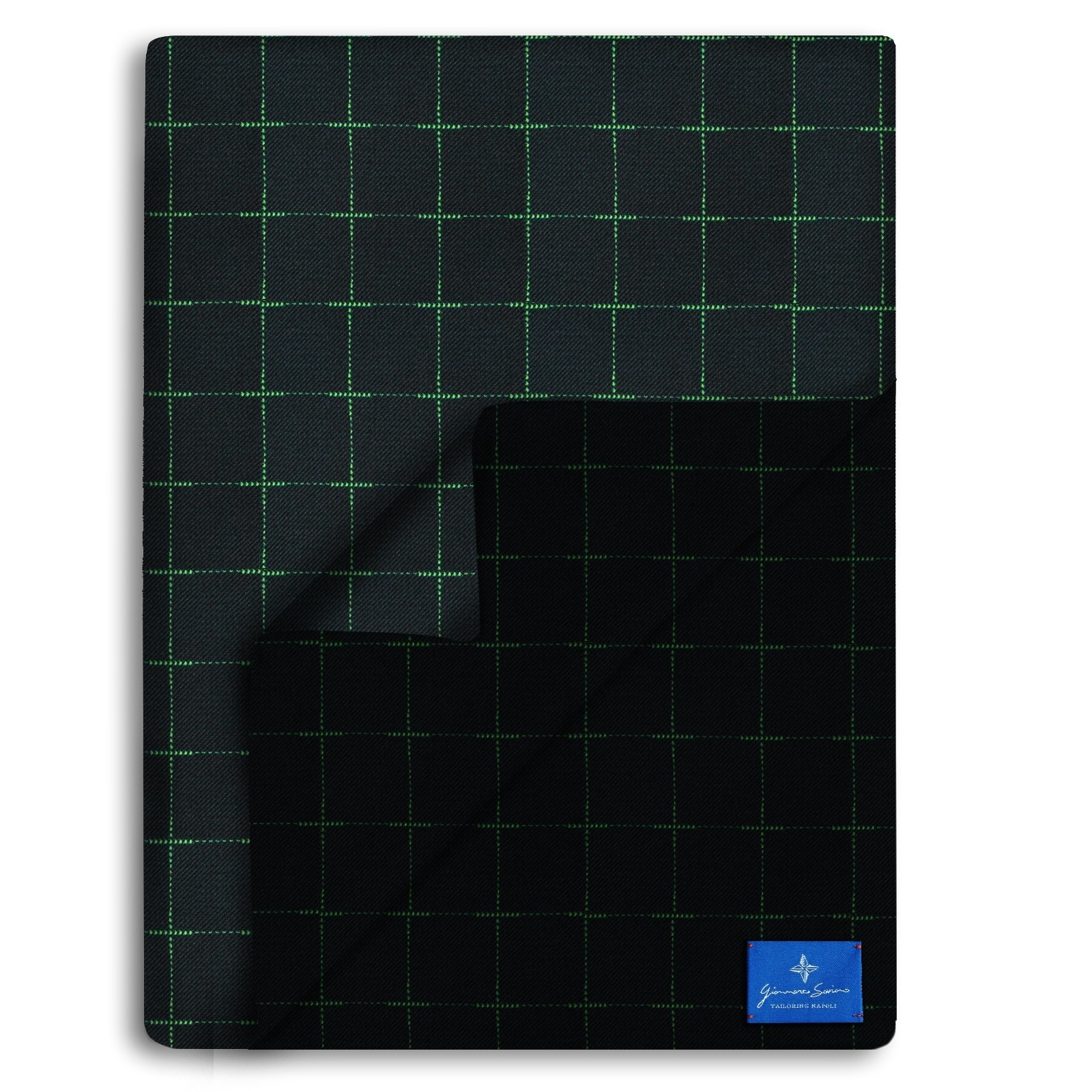 The side on which the pattern is present is made of silk fabric while the side on which there is the monochromatic color with the dark reflections of the pattern is in high quality wool fabric.