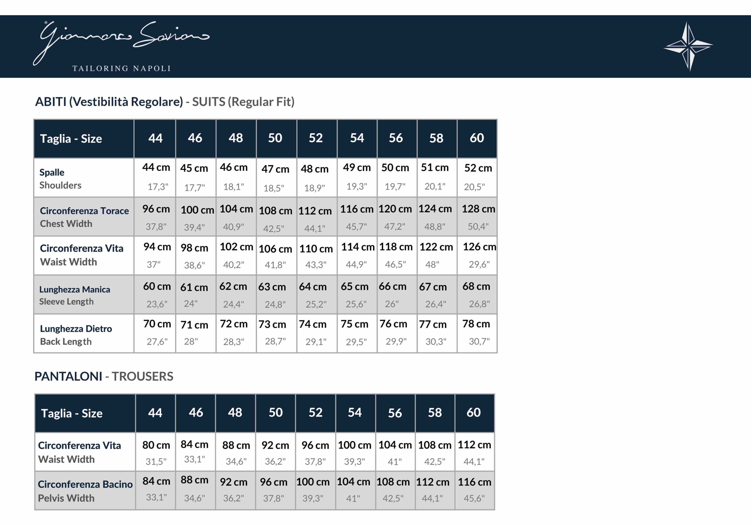 The correct length of the tie must coincide, when knotted, with the belt of the trousers. According to the height of each one, it is therefore possible to choose the appropriate size. For a height of less than 1.65 m the Short version (140 cm) is recommended, while for a height between 1.65 m and 1.88 m the Standard size (148 cm) is recommended, while for people with a height greater than 1.90m Long tie (155cm) is available.