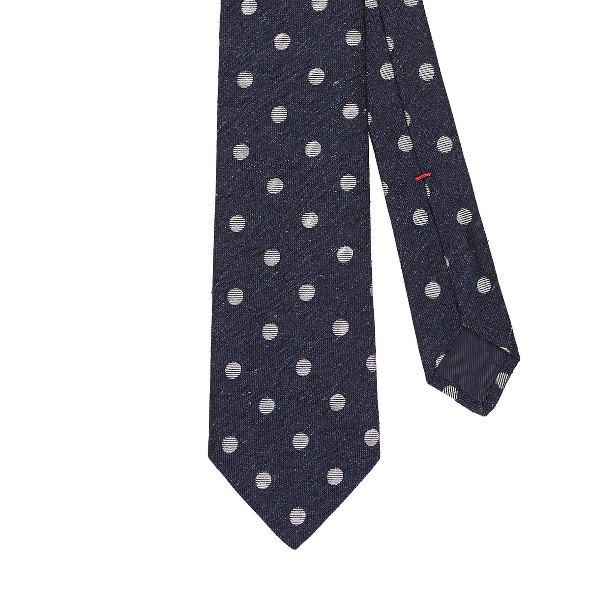 The soul is the fabric placed inside the tie and constitutes its support. The flap consists of a front part, the wider one called the shovel and a rear part called the tail. The lining is instead the rear fabric between the flap and the core. The tie is basted and once sewn, it ends with the flat fell seam, using a silk single sewing thread. This thread is also called SLIP-STITCH, it does not have any knot, starts from the inferior tail and arrives to the anterior shovel. To read the complete handmade process in detail, click here.