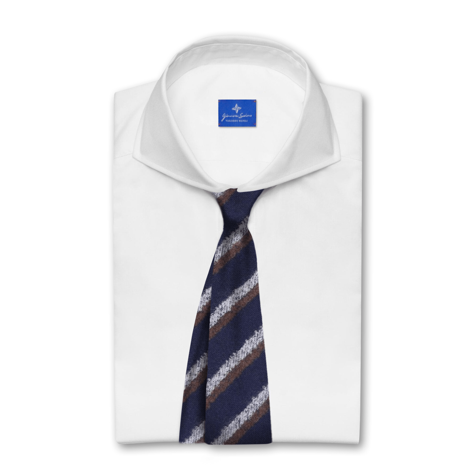 The tie 4 folds ACCADIA model is worked by expert hands of our artisans. The tie is created with one of the finest fabrics ever: wool, which gives it softness and refinement. The construction of the tie is given by the width of the front shovel of 8cm and a total length of 1.48cm suitable for the height of a person ranging from 1.65m up to 1.88m. An essential accessory to define your own style, together with the strictly handmade dress. The innovation of the tie, the protagonist of the formal wardrobe, is to get colored and sometimes wink at the new eccentric patterns. The tie returns to the reach of all ages to define their own refined and elegant style. The essential utility of the tie as well as being a detail of unique class is that of covering the buttons of the shirt. Handcrafted in Naples, Italy.