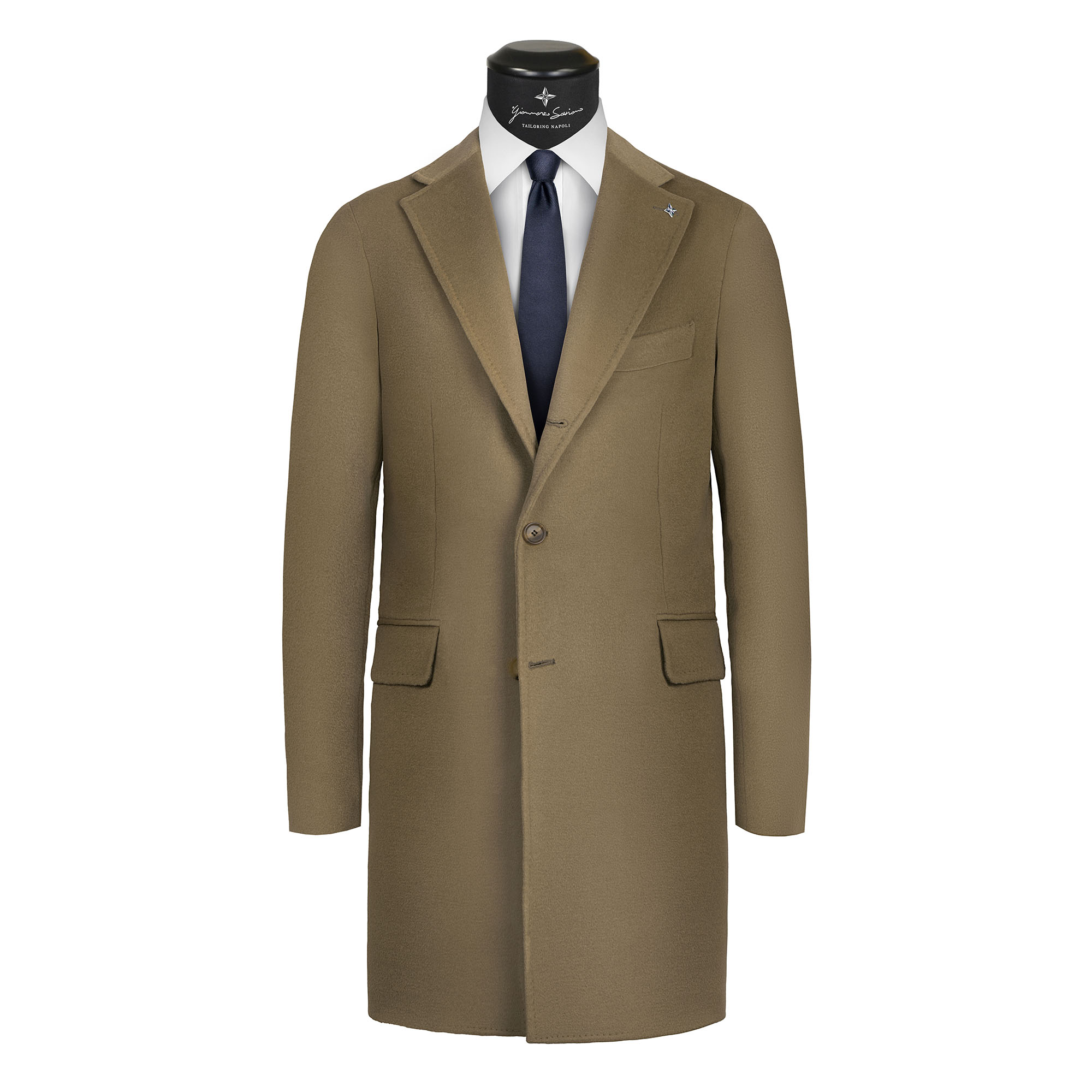 The outerwear is made in the following form: double-breasted with six buttons, on the front there is the peak lapel with the handcrafted ceramic magnet above the brand logo (it can be removed), on the sides there are 2 patch pockets with flap closure, on the chest there is it is the small boat pocket typical of Neapolitan haute couture, on the back there is the central slit with martingale, the interior is completely lined in cupro bemberg which guarantees a further touch of quality.