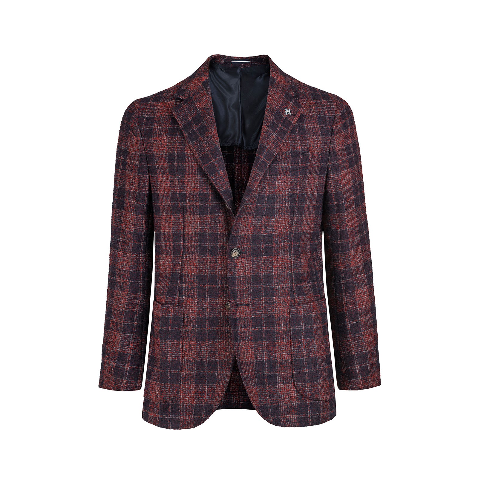 The jacket is made of 3 buttons ironed 2 buttons, on the front there is the classic lapel with above the handcrafted ceramic magnet reproducing the brand logo (it can be removed), on the chest there is the small boat pocket typical of the high shape Neapolitan tailoring, on the back 2 slits to give greater comfort.
