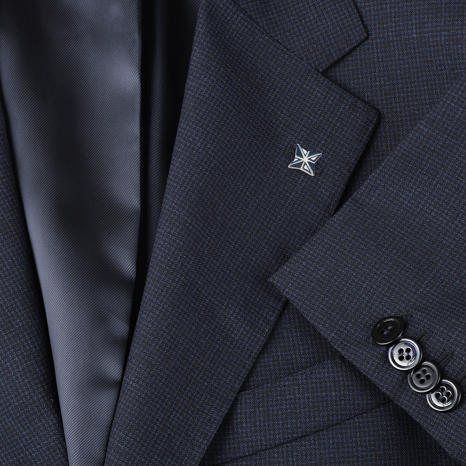 The jacket is made of 2 buttons, on the front there is the classic lapel with above the handcrafted ceramic magnet reproducing the brand logo (possible to remove it), on the chest there is the small boat pocket typical of the Neapolitan haute couture, on the back 2 slits to give greater comfort.