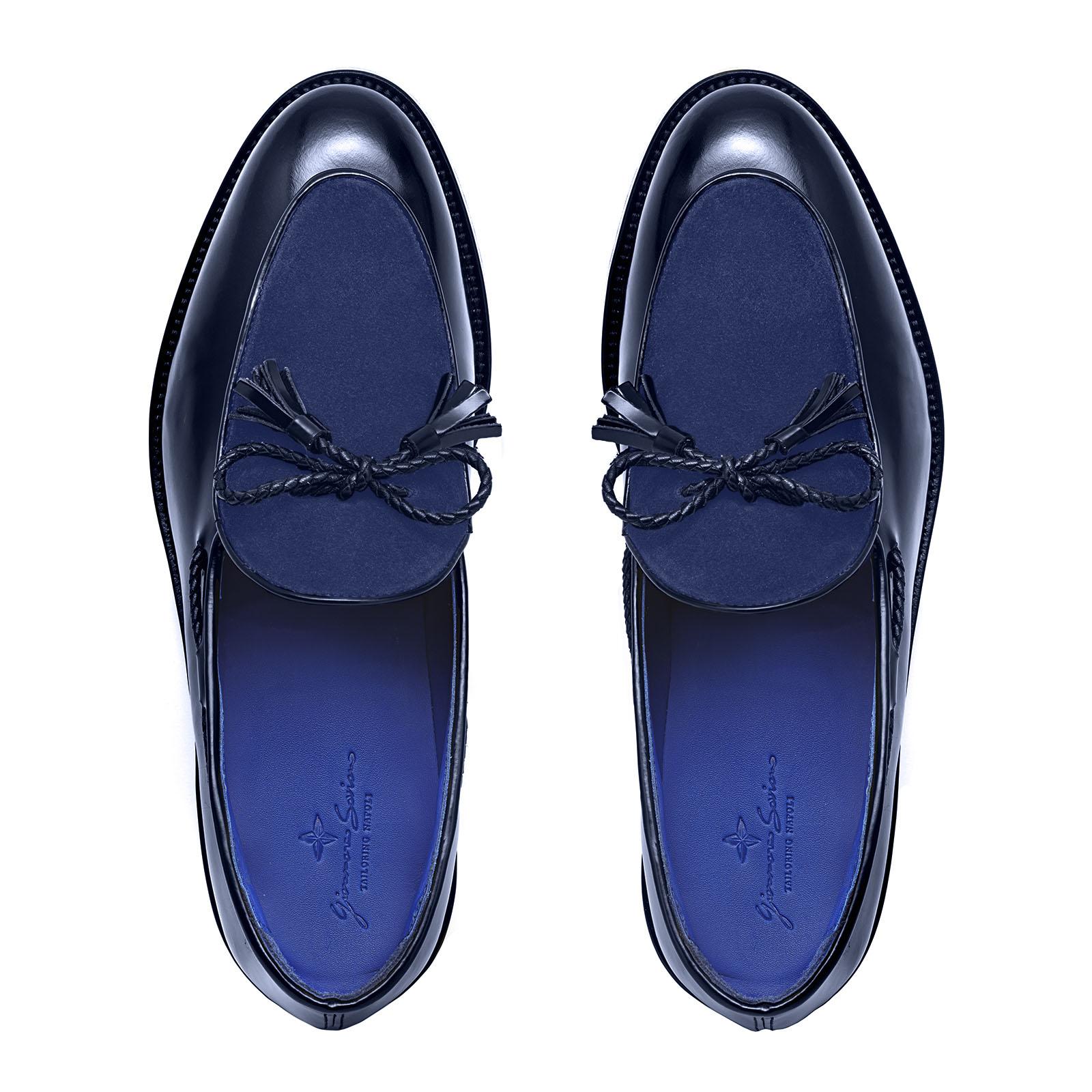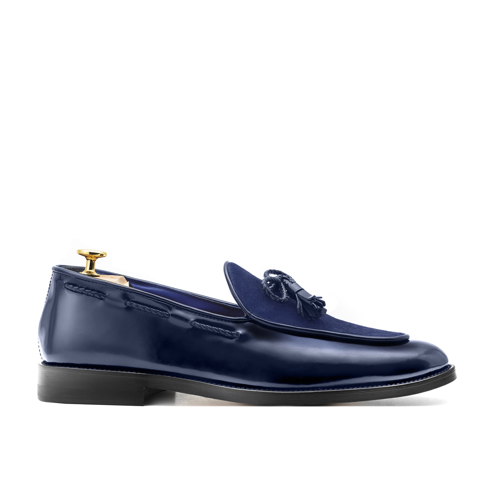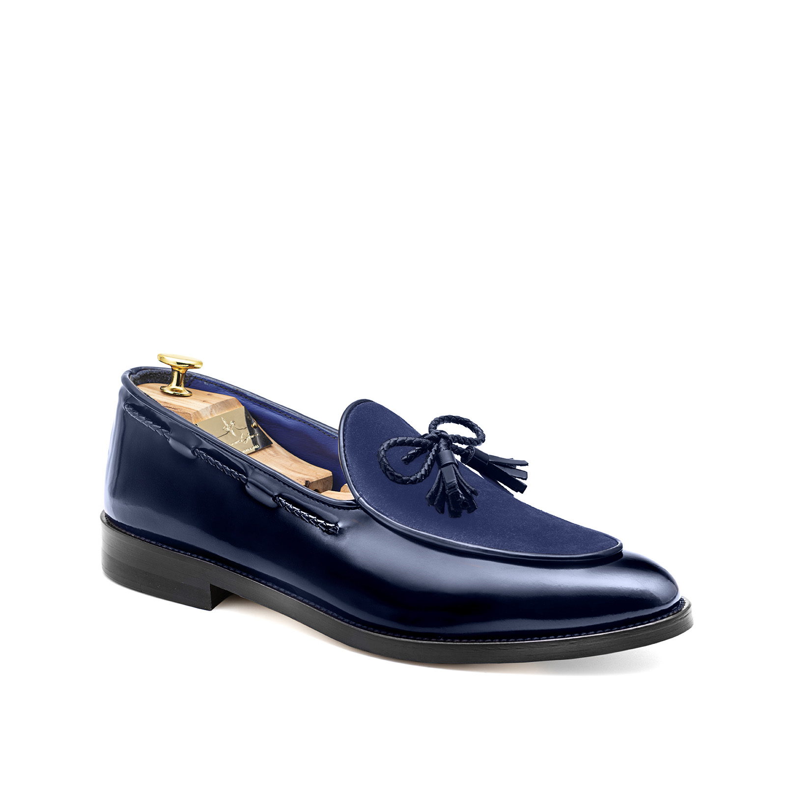Leather 100% brushed calf blue lower part and Leather 100% suede blue upper part – inner lining 100% Goat blue - Manufacturing