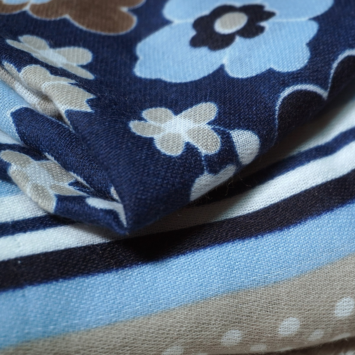Il tessuto in seta e lana ricopre un aspetto fondamentale per la realizzazione di questo accessorio, questo fa si che possa essere estremamente leggera, setosa al tatto ed estremamente luminosa nei colori delle fantasie.