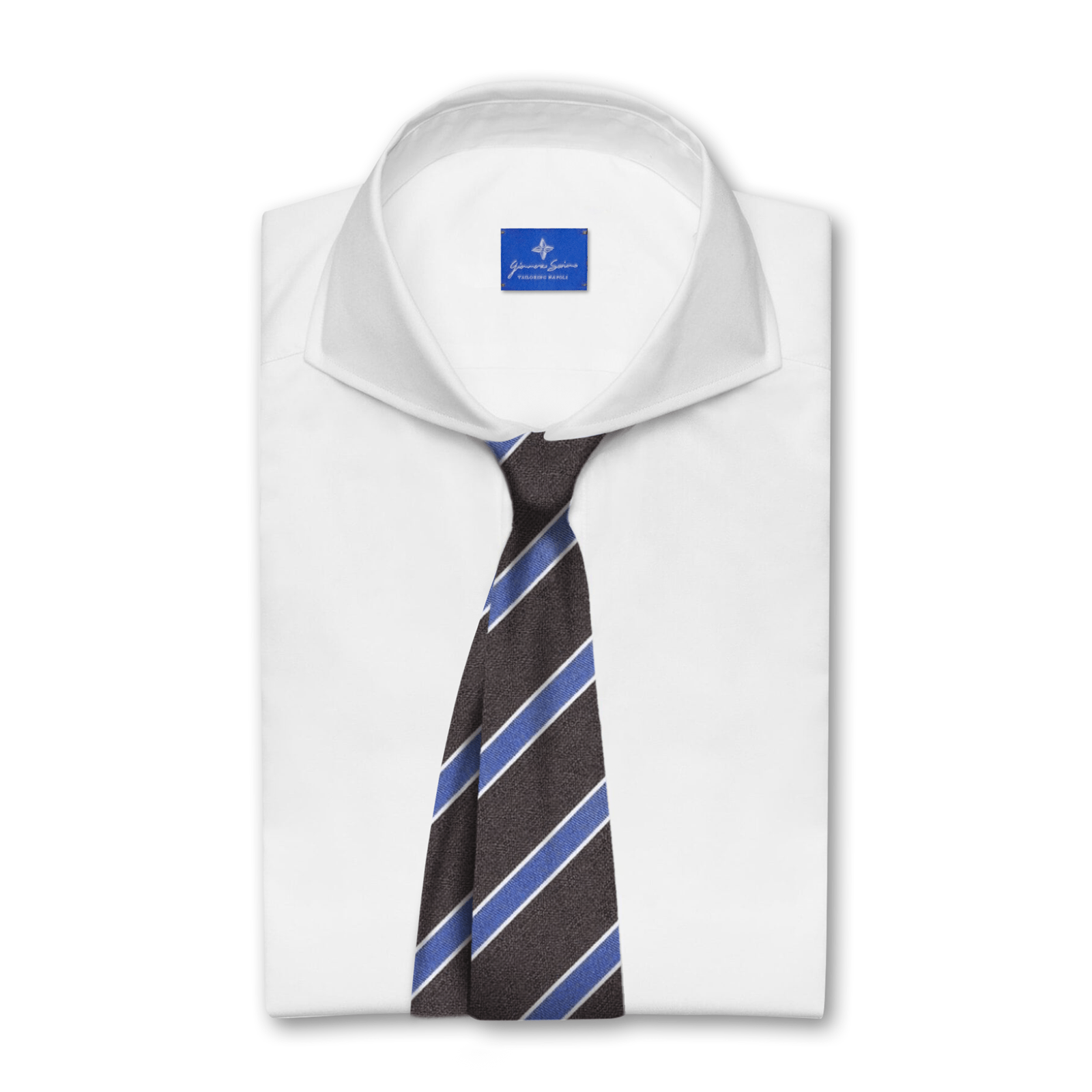 La cravatta 4 pieghe modello BRUINO è lavorata da mani esperte dei nostri artigiani. La cravatta è creata con uno dei tessuti più pregiati in assoluto: la seta, ciò le conferisce luminosità, morbidezza, leggerezza e raffinatezza. La costruzione della cravatta è data dalla larghezza della pala anteriore di 8cm e da una lunghezza totale di 1,48cm adatta per l’altezza di una persona che va dal 1,65m fino al 1,88m. Un accessorio indispensabile per definire, insieme all’abito rigorosamente fatto a mano, il proprio stile. L’innovazione della cravatta, protagonista del guardaroba formale, è quella di colorarsi e talvolta strizzare l’occhio alle nuove fantasie eccentriche. La cravatta torna alla portata di tutte le età per definire il proprio stile ricercato ed elegante. L’utilità essenziale della cravatta oltre ad essere un dettaglio di classe unica e quello di coprire i bottoni della camicia. Lavorato artigianalmente a Napoli, Italia.