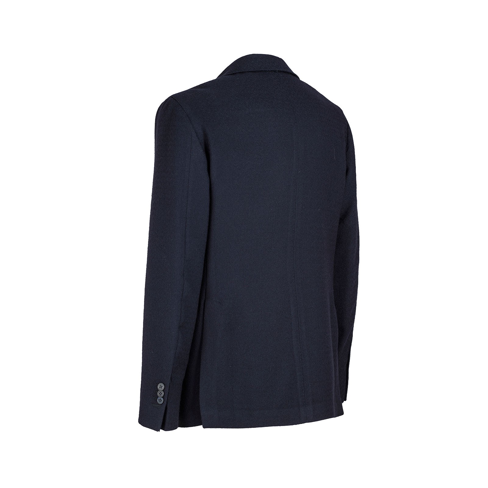 Passaggi a mano: attaccatura collo, attaccatura manica a camicia, ribattitura interno braccia, ribattitura tasche, ribattitura fondo, etichetta, ribattitura fodera, ribattitura taschino, impunture 2 mm, bottoni e asole