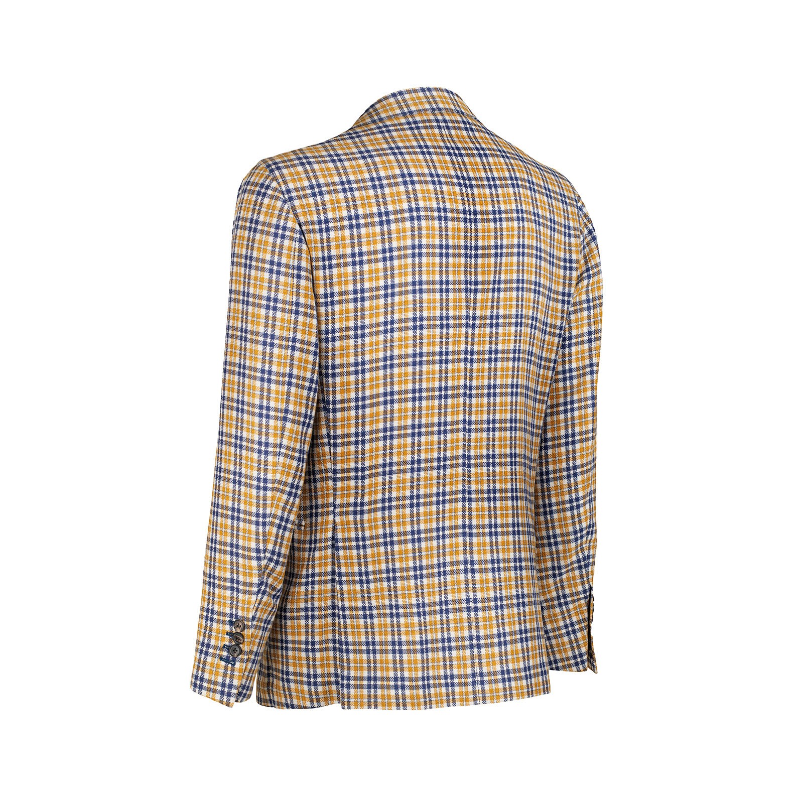 La giacca è realizzato in 3 bottoni stirato 2 bottoni, sul davanti è presente il rever classico con sopra la calamita artigianale in ceramica riproducente il logo del brand (possibile da rimuoverla), sul petto c’è il taschino a barchetta tipica forma dell’alta sartoria napoletana, sul retro 2 spacchi per dare maggiore comodità.