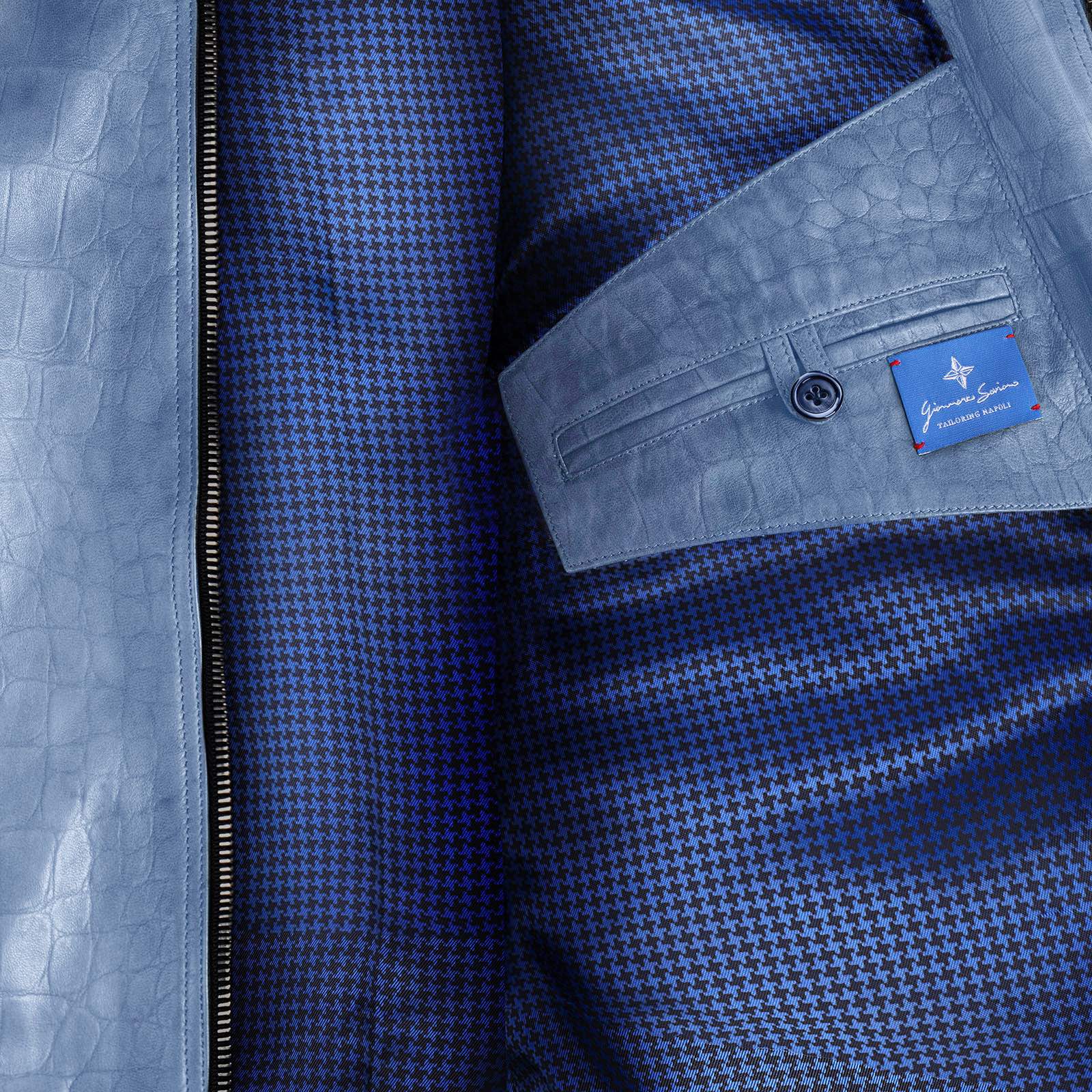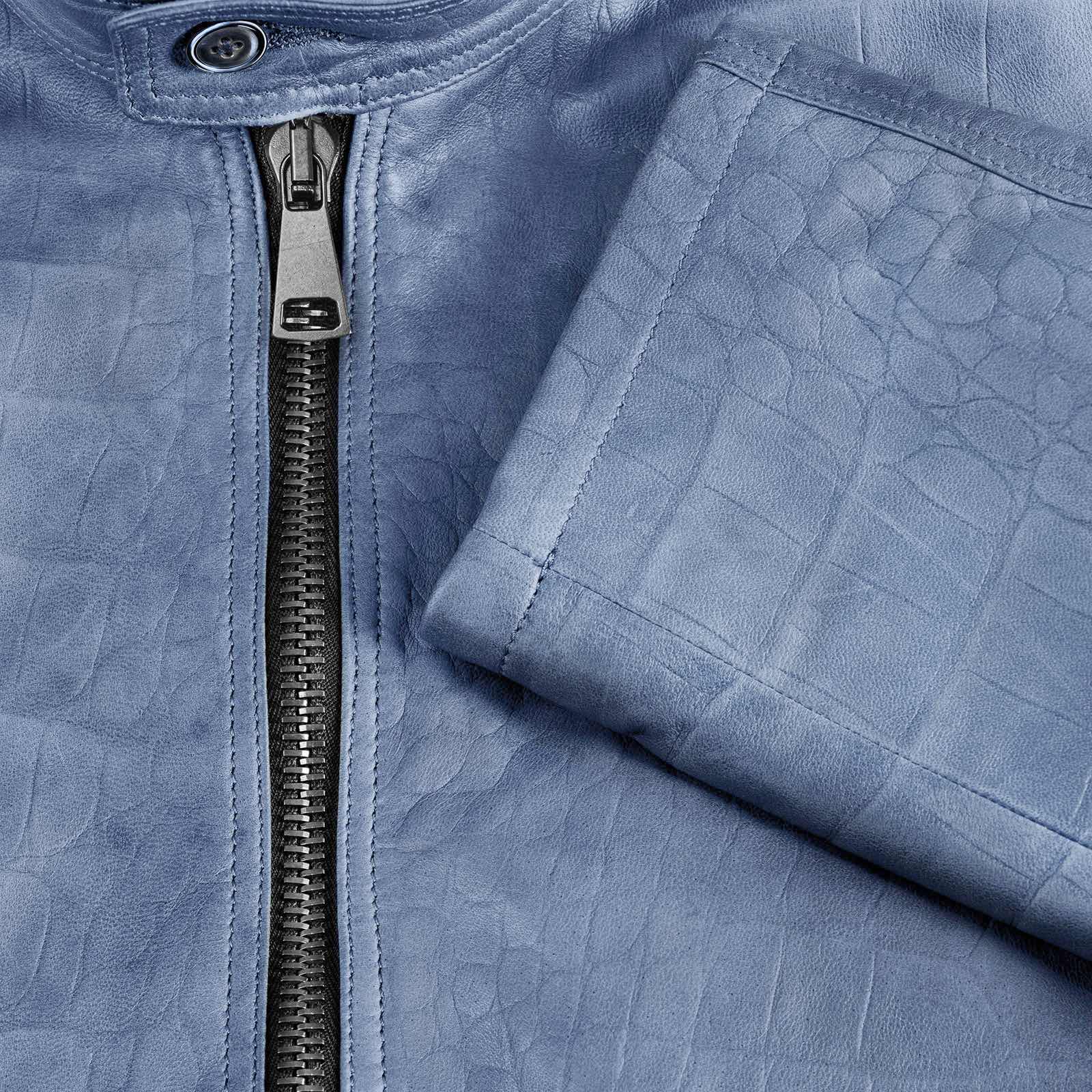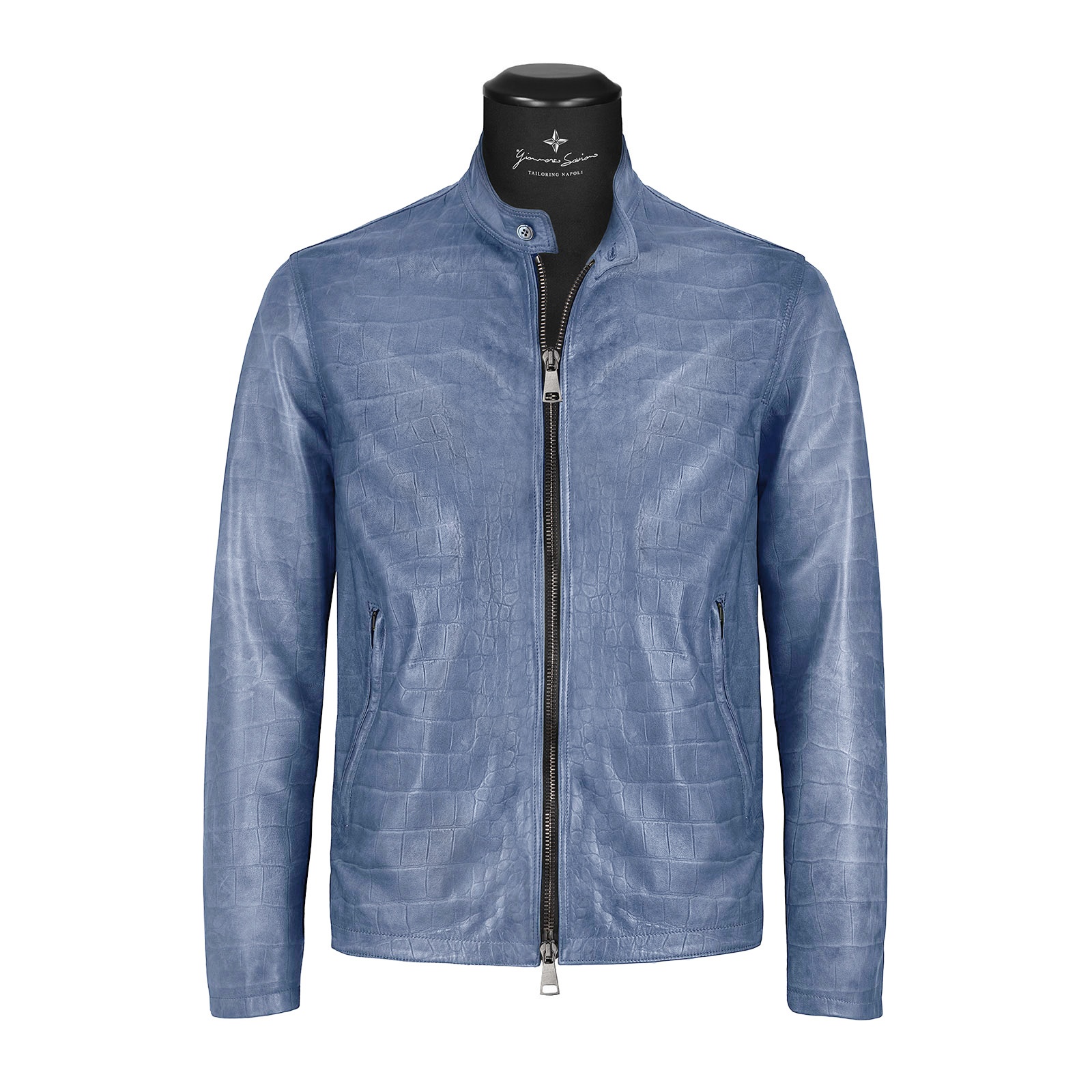 Pellame: 100% Agnello – Lavorazione: coccodrillo amazzonico – blu chiaro – Interamente foderato in Seta Bemberg dal design esclusivo. Il nostro pellame pregiato è lavorato in modo “Naturale", tinto in botte senza pigmenti, cere e fissativi. La tecnica utilizzata è tramandata di generazione in generazione onde garantire alle pelli quella naturale morbidezza che rende i nostri giubbini lussuosi e unici nel loro genere. Inoltre teniamo a informare, che qualora dovessero esserci delle piccolissime irregolarità di segni e di colore in alcune parti, esse saranno una peculiarità del tutto naturale del pellame specifico. - Lavorazione