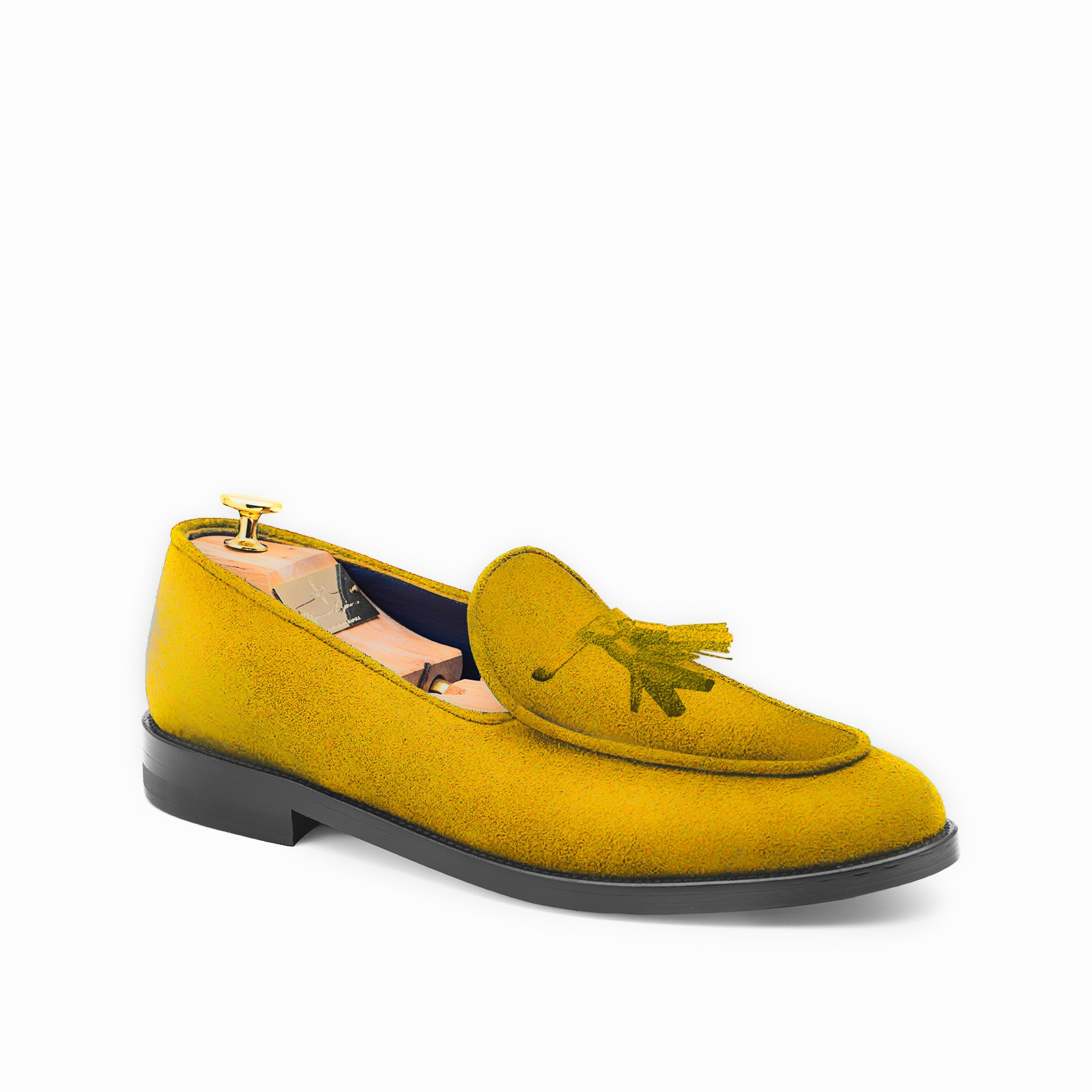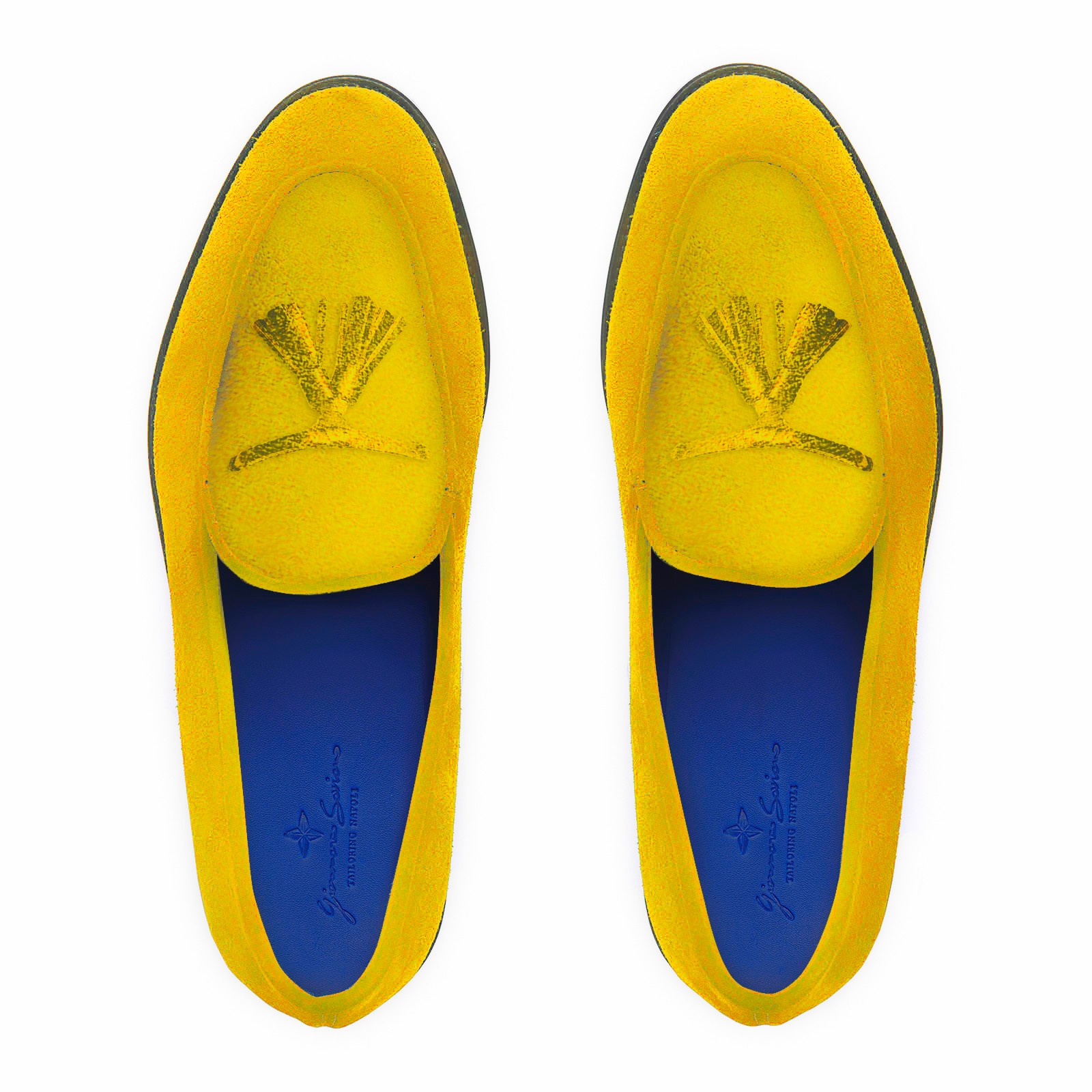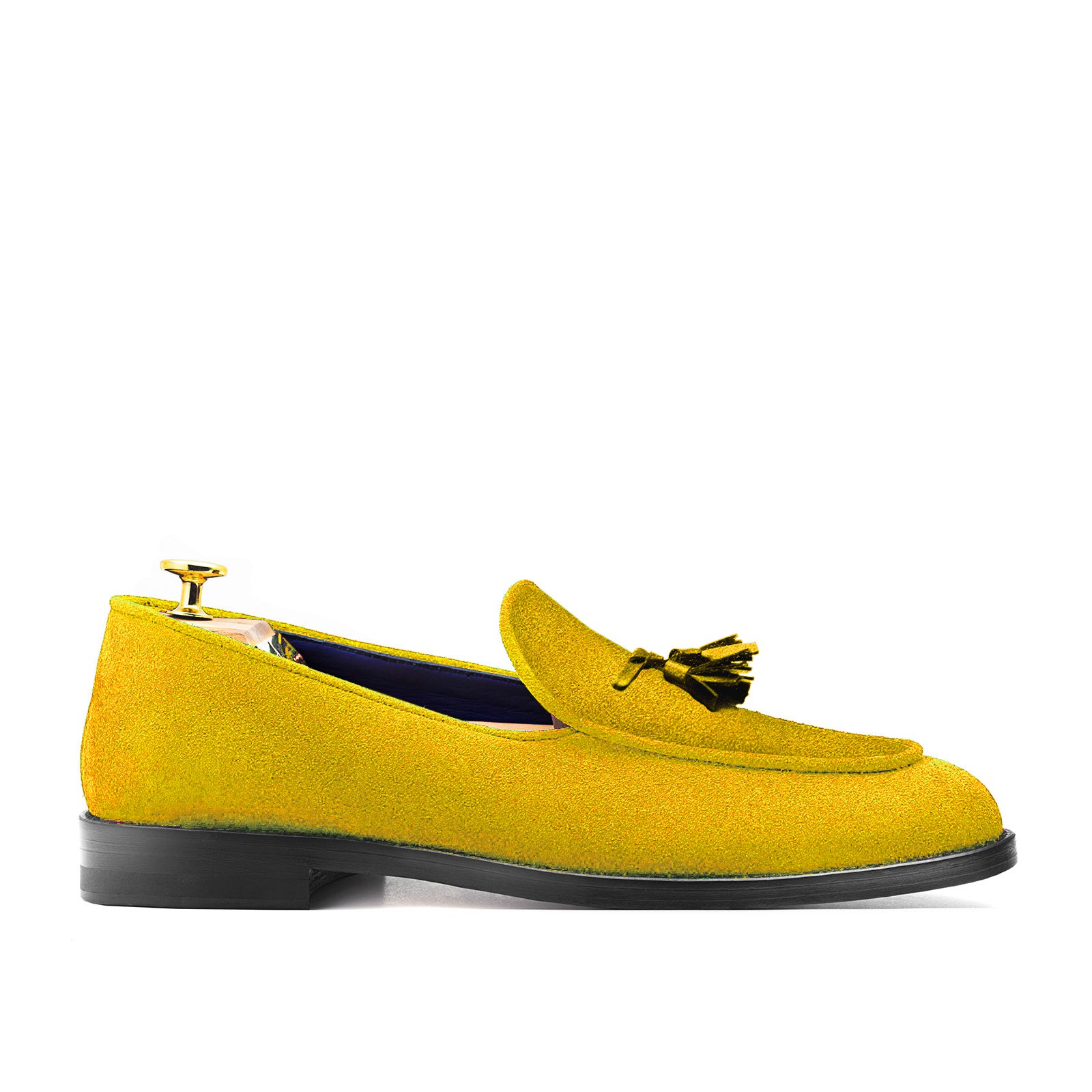 Pellame 100% scamosciata giallo – fodera interna 100% Capra blu - Lavorazione