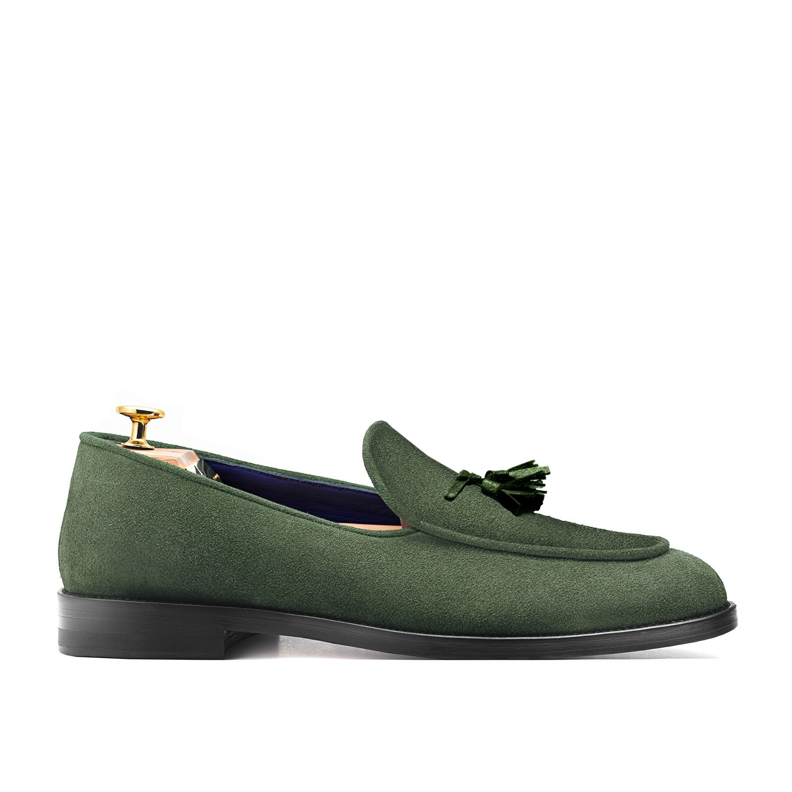 Pellame 100% scamosciata loden – fodera interna 100% Capra blu - Lavorazione