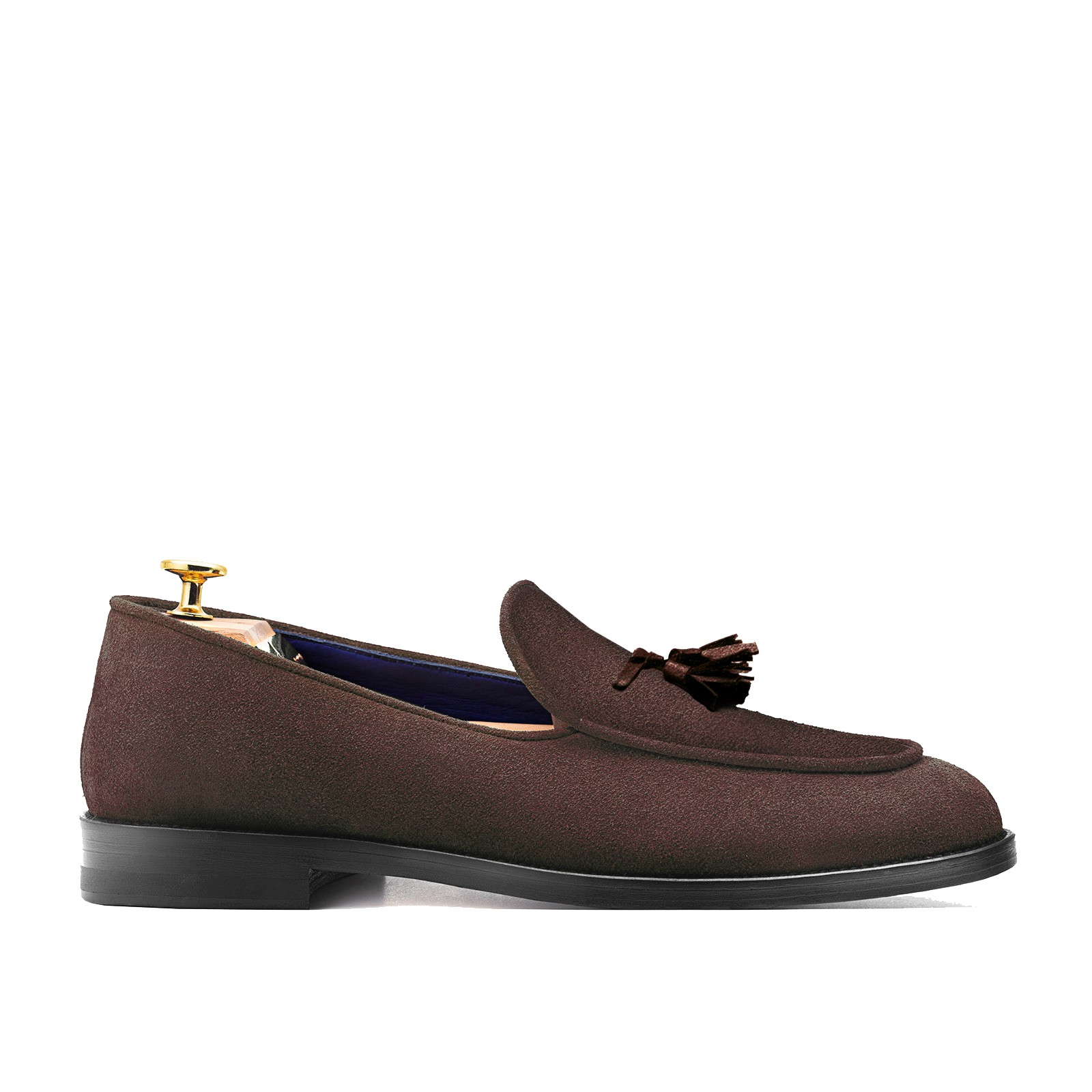 Pellame 100% scamosciata terra – fodera interna 100% Capra blu - Lavorazione
