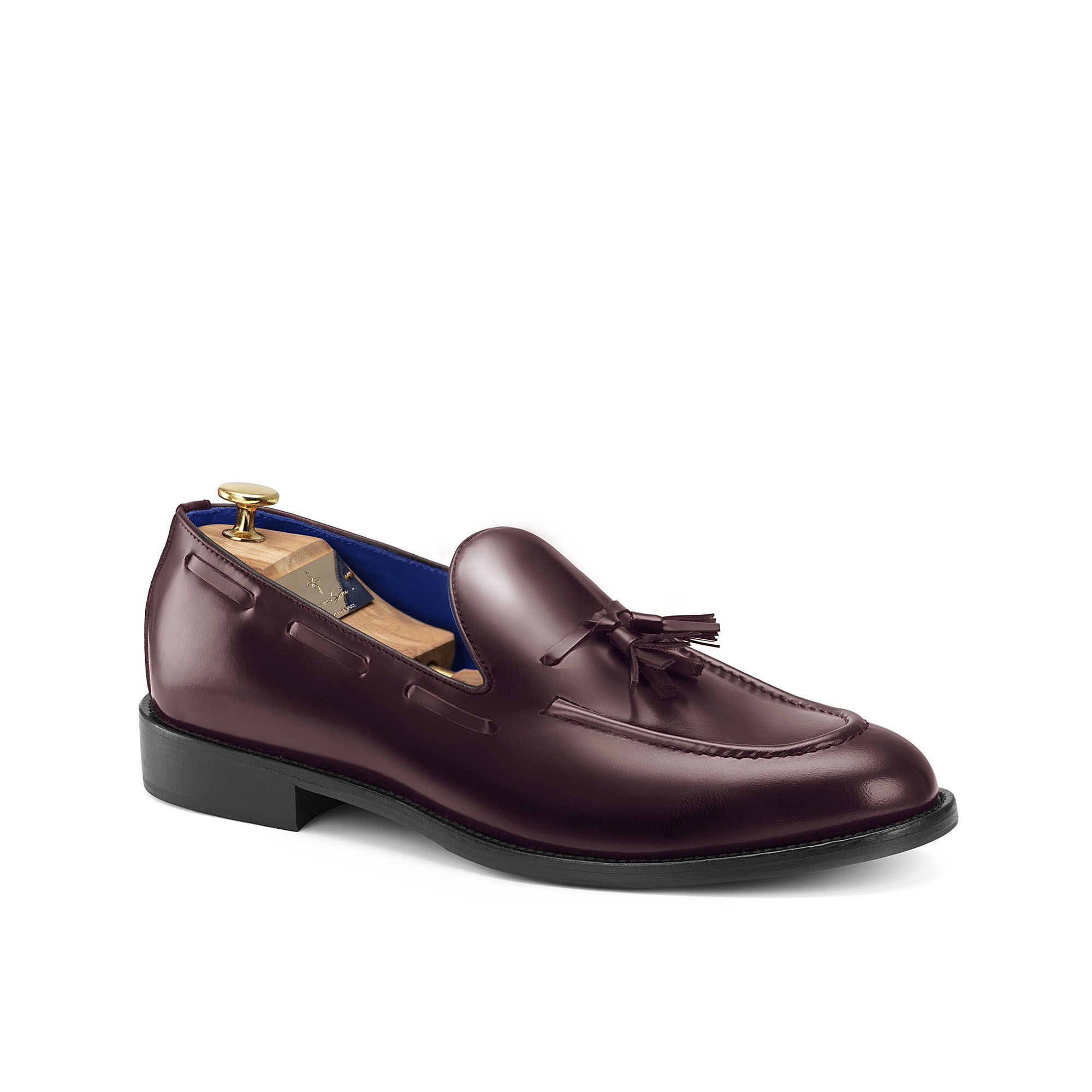 Pellame 100% Vitello Spazzolato bordeaux – fodera interna 100% Capra blu - Lavorazione