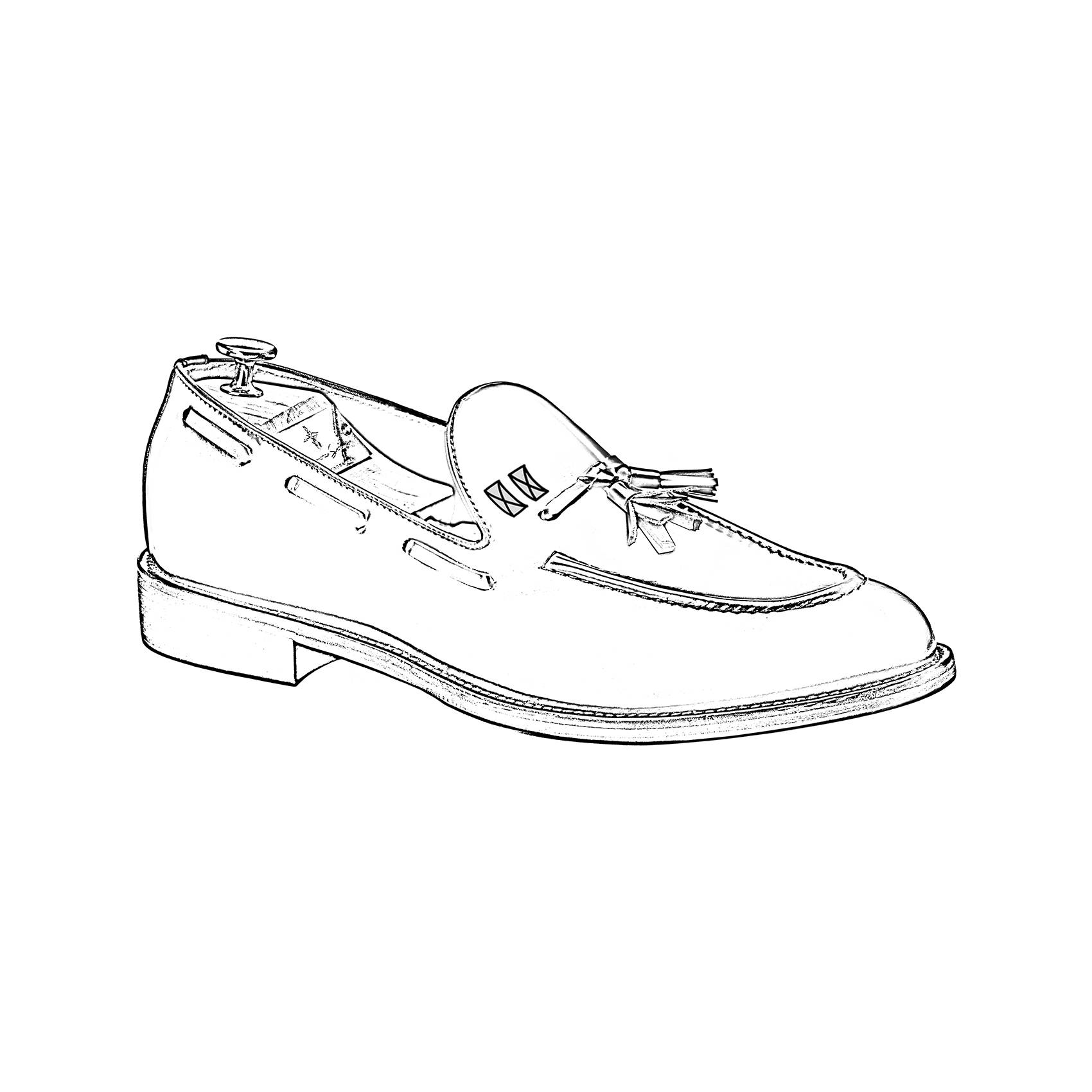 Il mocassino è realizzato con le nappine e il laccio intrecciato lungo i laterali nella parte superiore, il tacco in antiscivolo vero cuoio è alto 3 cm: altezza ritenuta ideale dagli esperti per una corretta deambulazione, il guardolo anch’esso in vero cuoio.