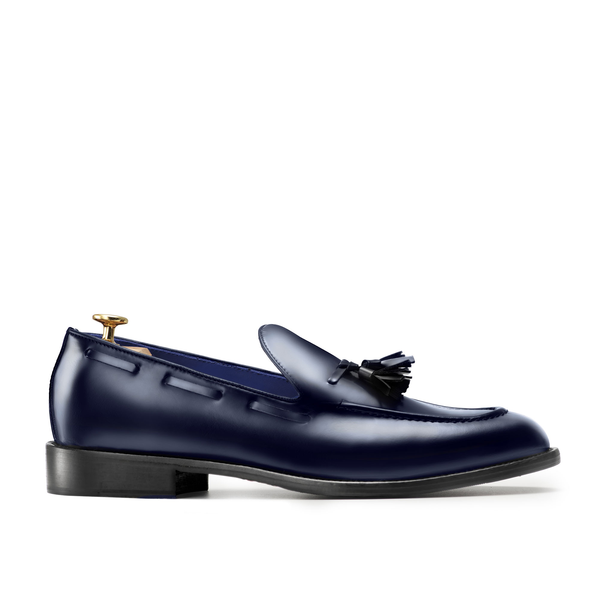 Un’altro particolare di unicità e qualità assoluta è dato sia dalla suola in vero cuoio dipinta artigianalmente di colore blu con cucitura a vista (segno distintivo della nostra scarpa) e sia dalla fodera interna trapuntata che è interamente in pelle di capra sempre di colore blu.