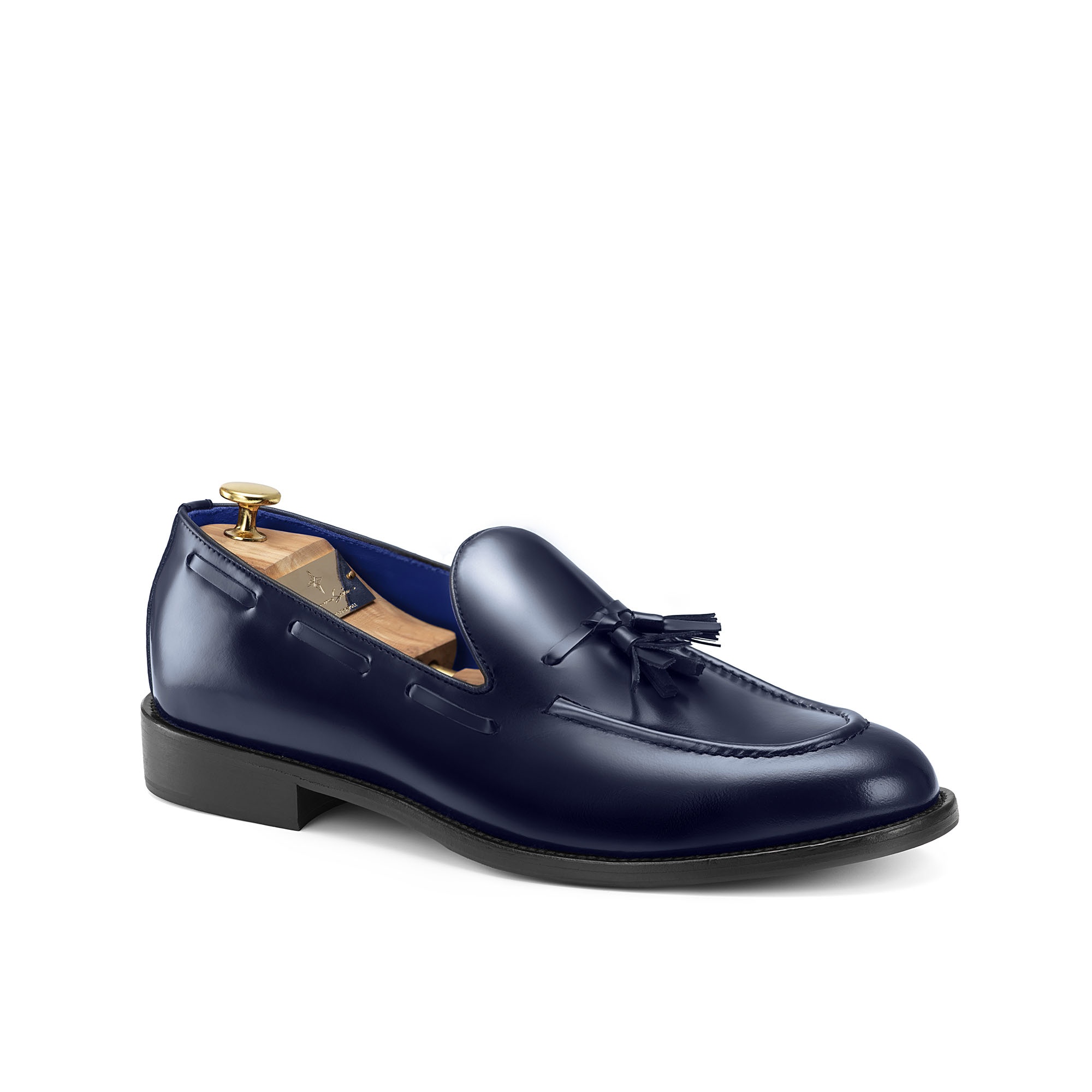 Un’altro particolare di unicità e qualità assoluta è dato sia dalla suola in vero cuoio dipinta artigianalmente di colore blu con cucitura a vista (segno distintivo della nostra scarpa) e sia dalla fodera interna che è interamente in pelle di capra sempre di colore blu.