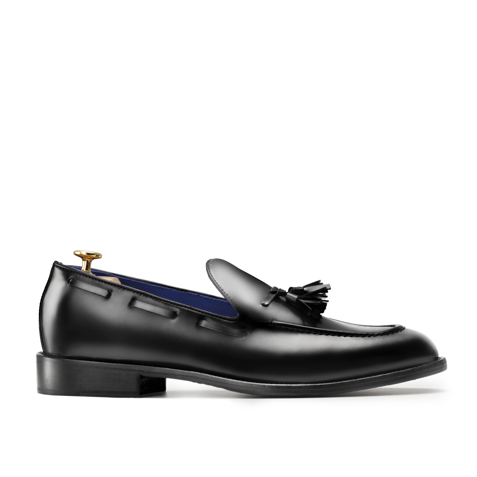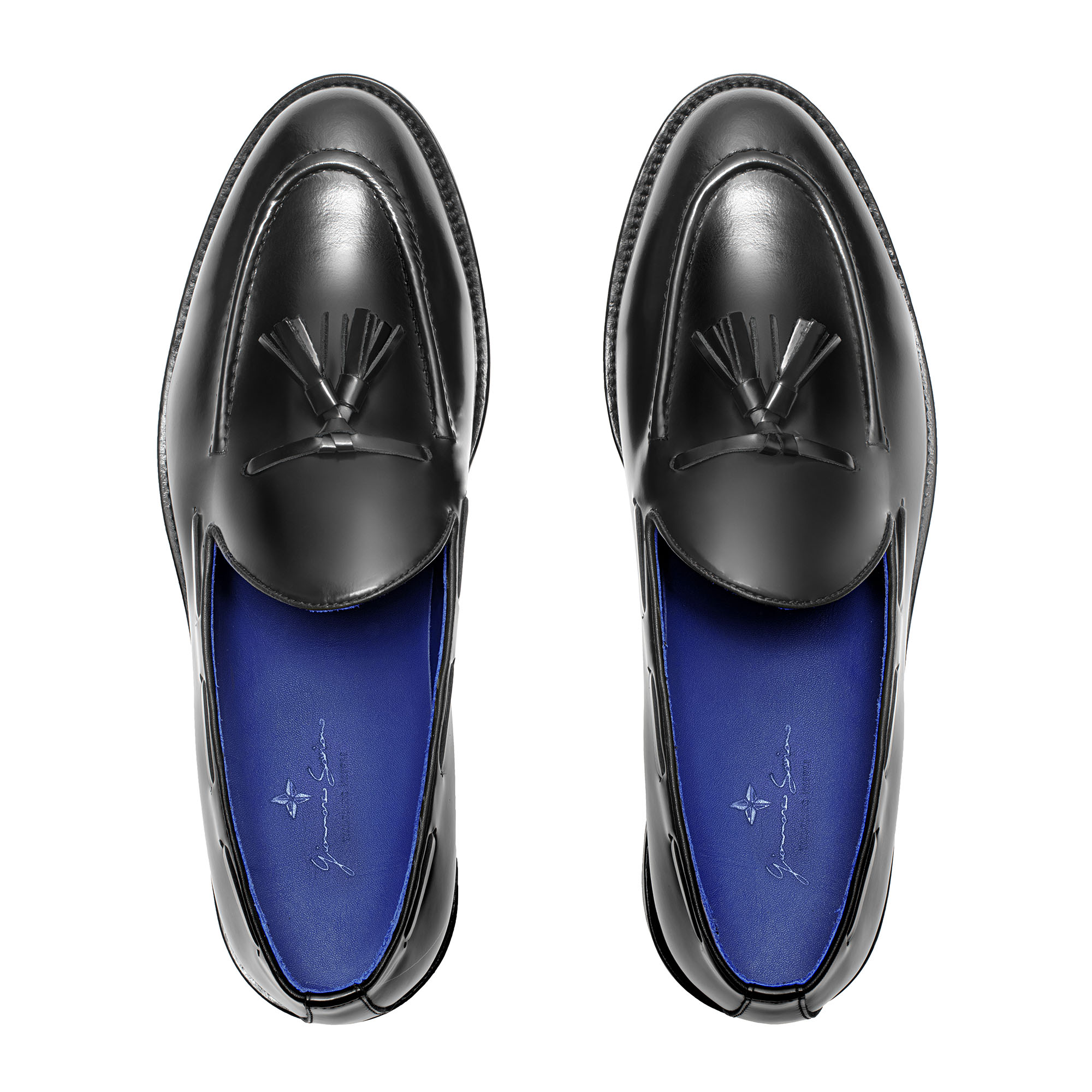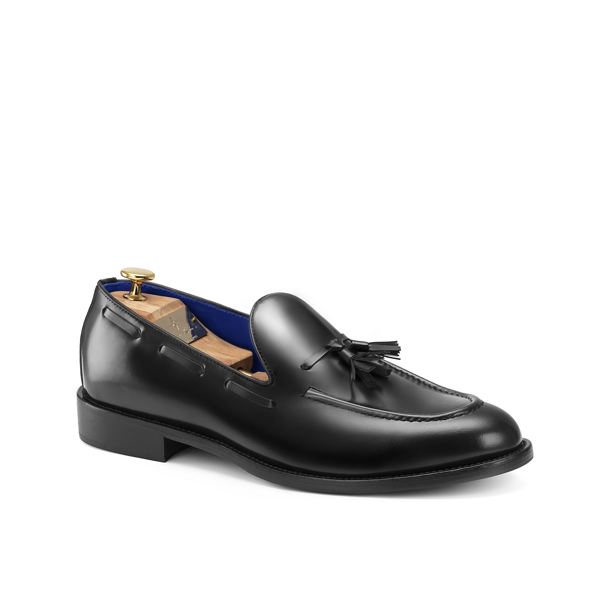 Il mocassino è realizzato con le nappine, il tacco in antiscivolo vero cuoio è alto 3 cm: altezza ritenuta ideale dagli esperti per una corretta deambulazione, il guardolo anch’esso in vero cuoio.