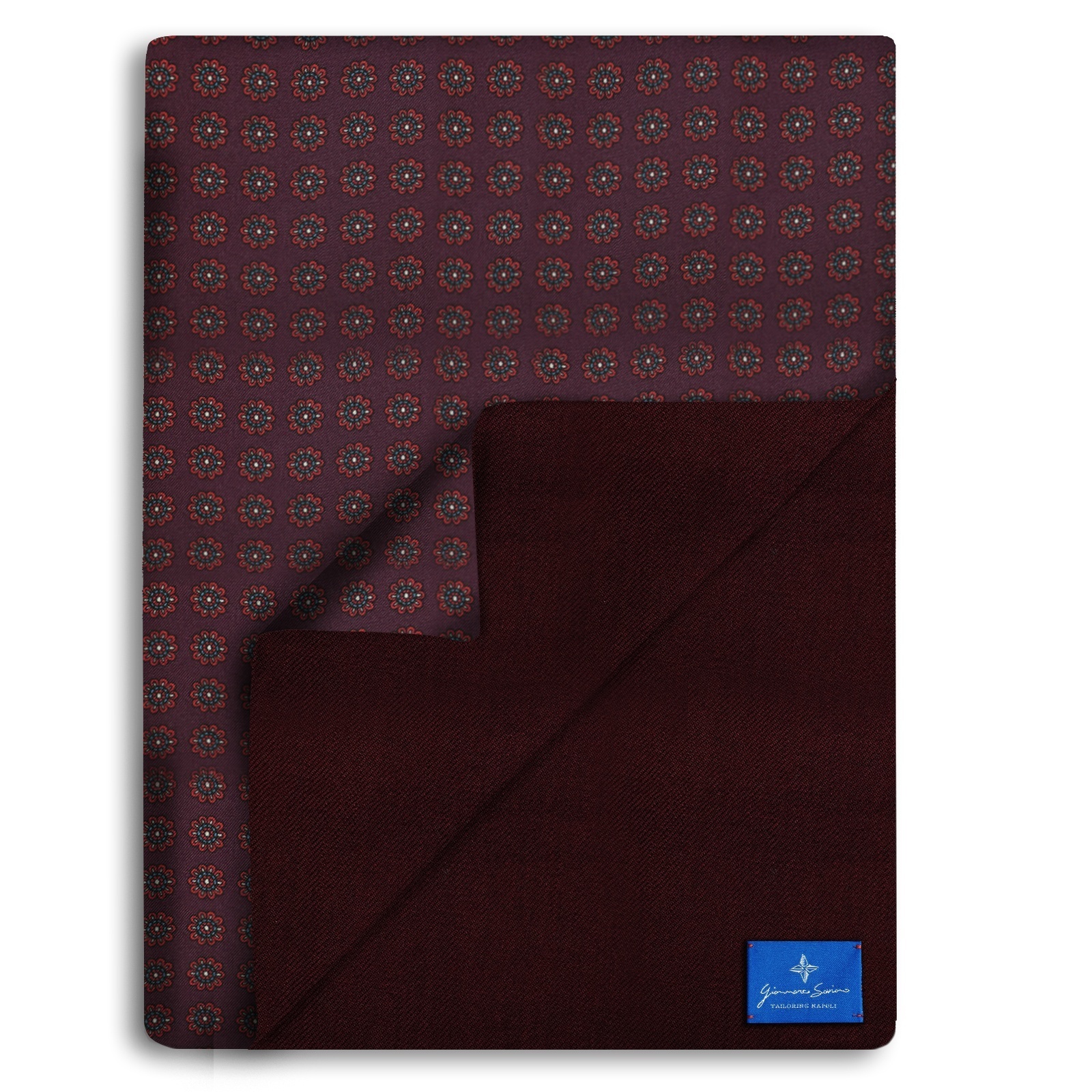 Realizzata in tessuto seta il lato su cui è presente la fantasia mentre in tessuto lana di alta qualità il lato su cui è presente la tinta monocromatica.
