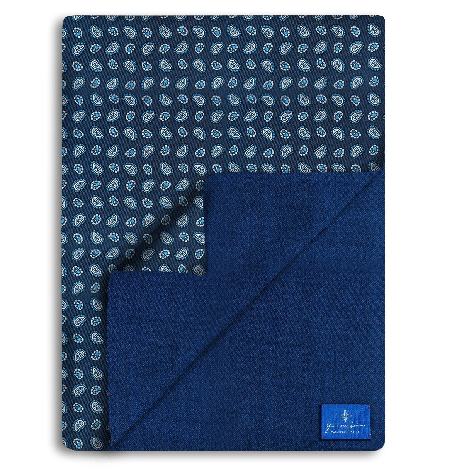 Realizzata in tessuto seta il lato su cui è presente la fantasia mentre in tessuto lana di alta qualità il lato su cui è presente la tinta monocromatica.