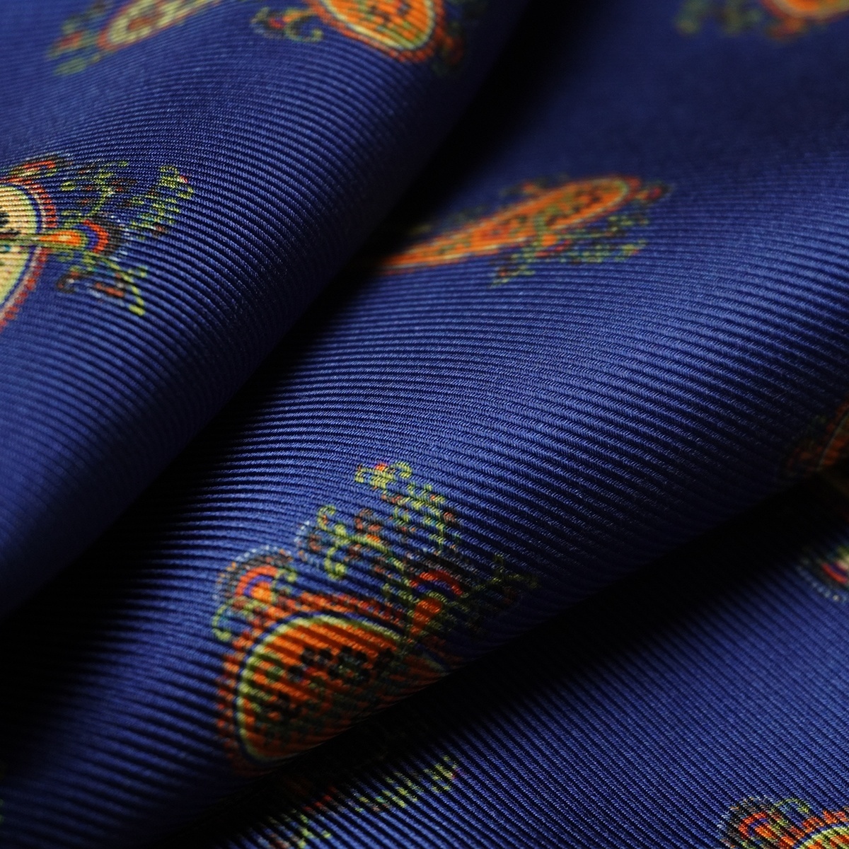 Il tessuto in seta e lana ricopre un aspetto fondamentale per la realizzazione di questo accessorio, questo fa si che possa essere estremamente leggera, setosa al tatto ed estremamente luminosa nei colori delle fantasie.